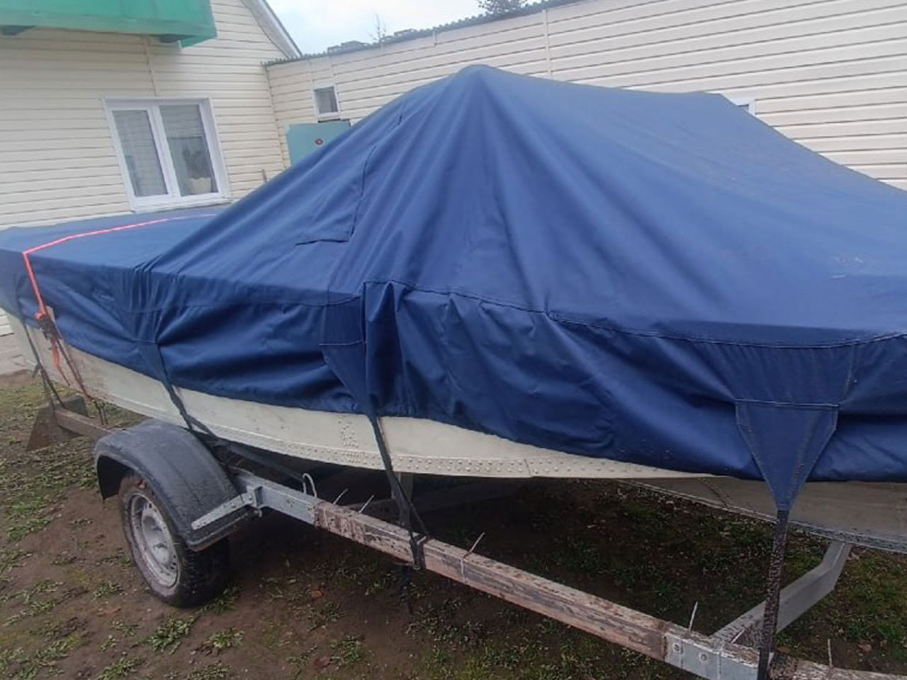 Транспортировочный тент для лодки с рулем и стеклом Амур М