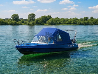 Тент с задней дверью для выхода к мотору, небольшими боковыми окнами и усиленными краями для установки застёжек. Изготовлен из специализированной тентовой ткани Оксфорд 600 повышенной плотности